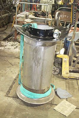 | The boiler without smokebox, front tube plate or, indeed, barrel ! | |