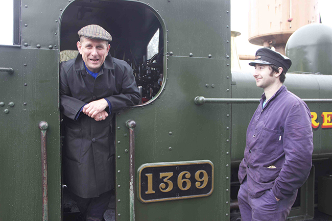 | Driver Rodney Cox and Fireman Russell McKee with GWR 0-6-0PT 1369 Buckfastleigh | |