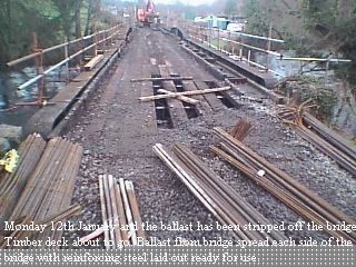 The Contractors who built the new bridge were able to report yesterday that all the elements of the new structure had achieved the design strength of the concrete at 50 Newton, thus clearing the bridge for use as soon as the track was relaid and contractors equipment out of the way.