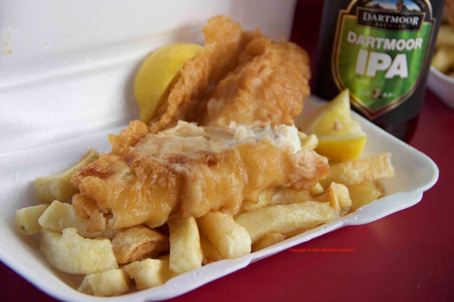 In the evening 1369 hauled the first of the Buckfastleigh Station Group’s ever-popular fish’n’chip specials. At only £15 per head these are astoundingly good value – you get a return train ride to Totnes and your meal all as part of the price. Museum volunteer Robin Springett celebrated his birthday on the train, and is seen with his magnificent cake. The fish and chips come from Jolly Rogers in Buckfastleigh, with sausage and chips as an option. Another great evening out, and organised entirely by Buckfastleigh Station Group volunteers. The proceeds help to fund their work at the station.